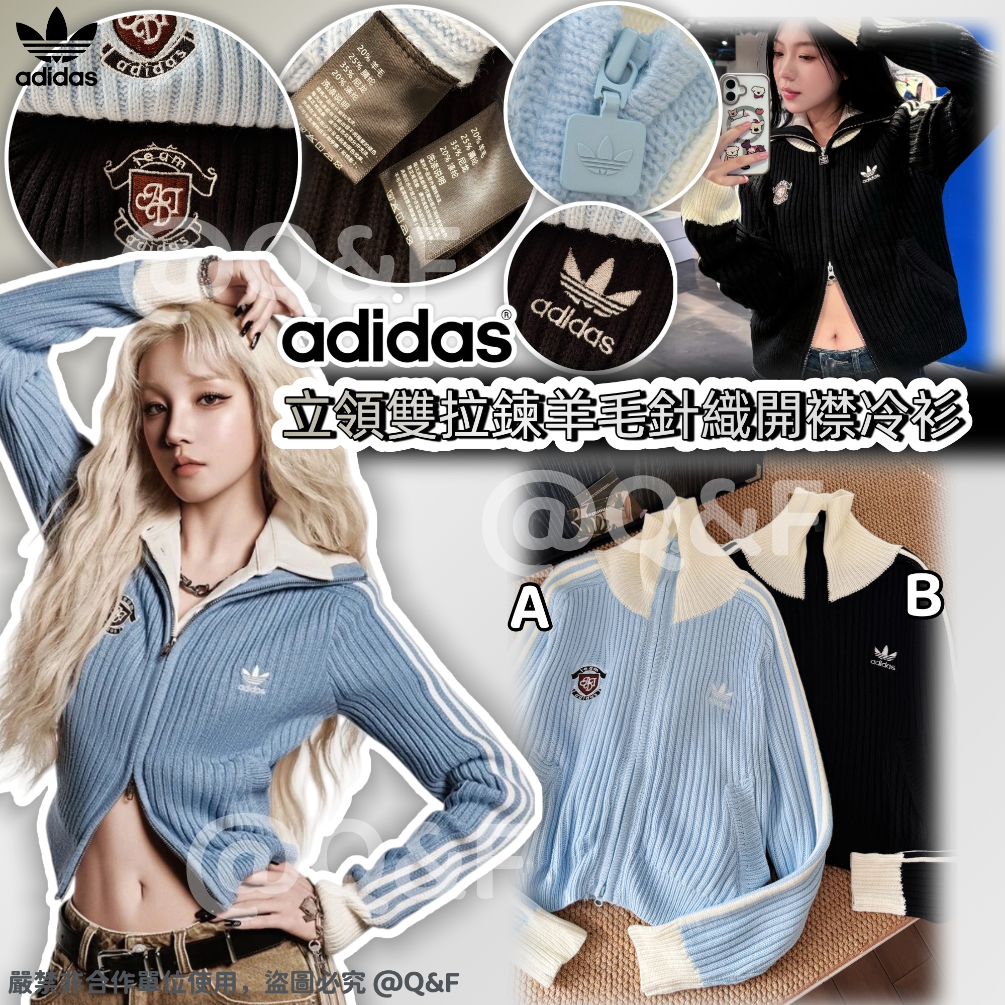 Adidas 復古立領雙拉鍊羊毛針織開襟冷衫