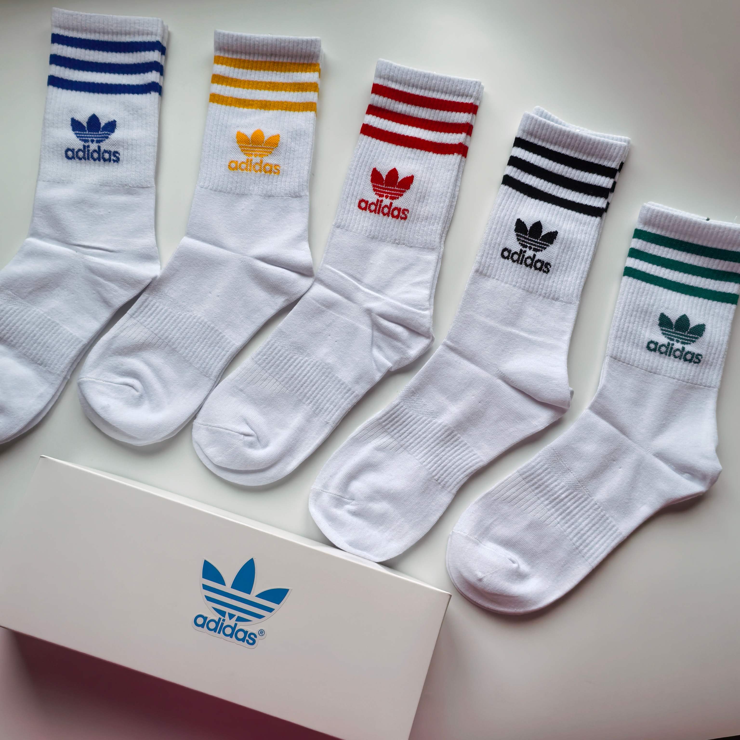 Adidas 白色長筒彩條長筒襪(一盒5對)