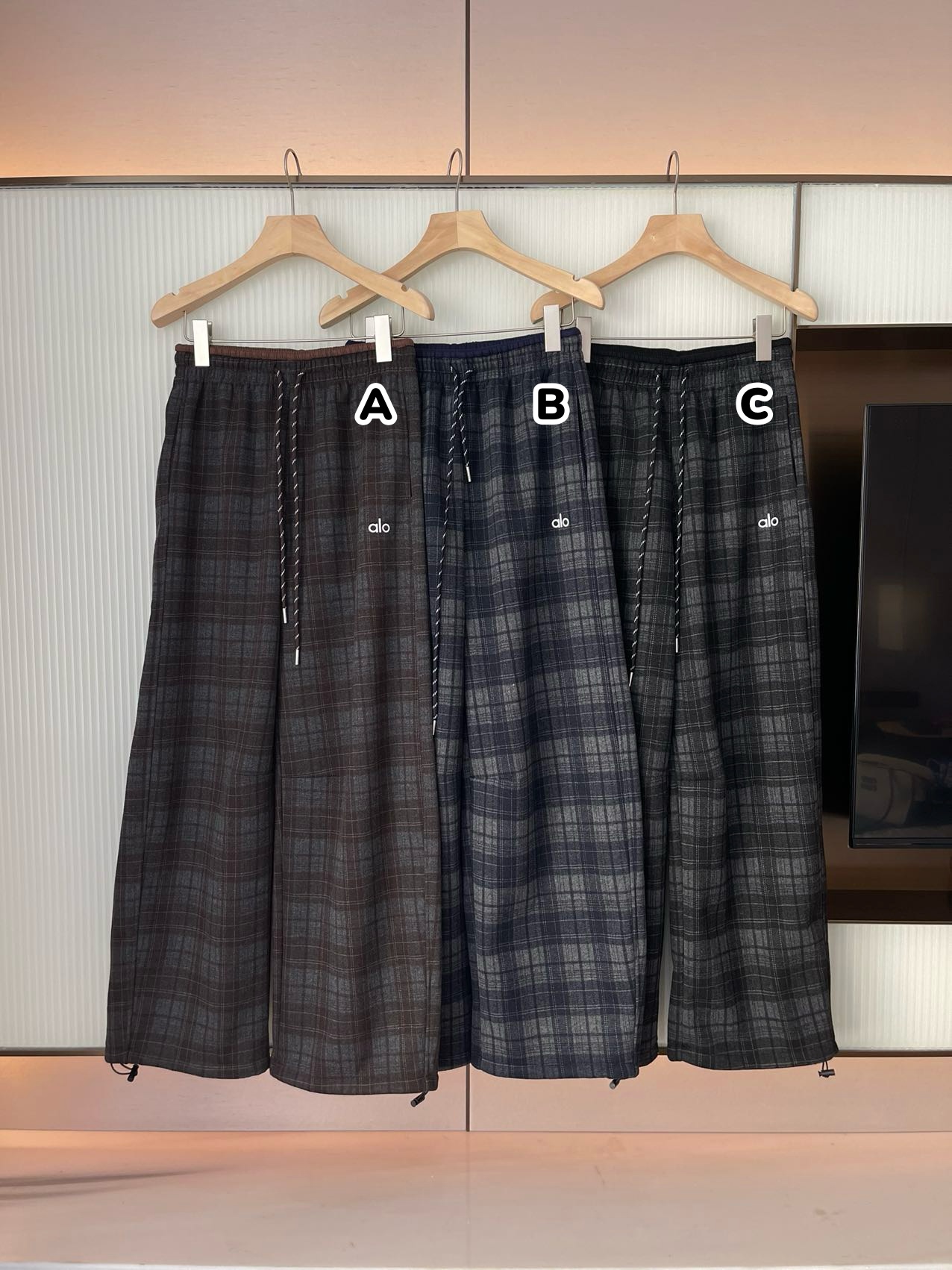Alo 鬆緊腰休閒加絨格仔彎刀褲