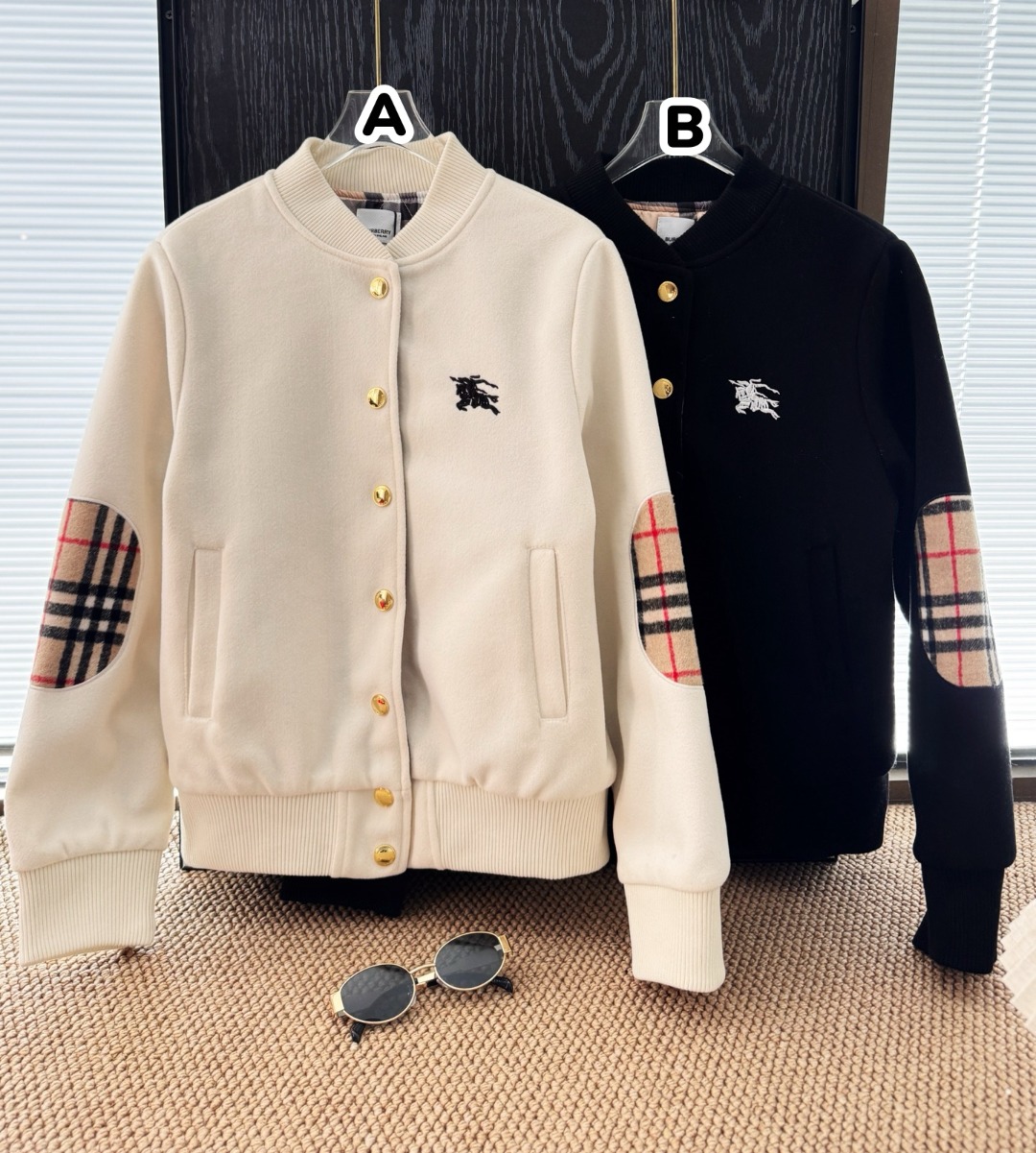 Burberry 格紋拼接加厚夾棉呢料棒球服