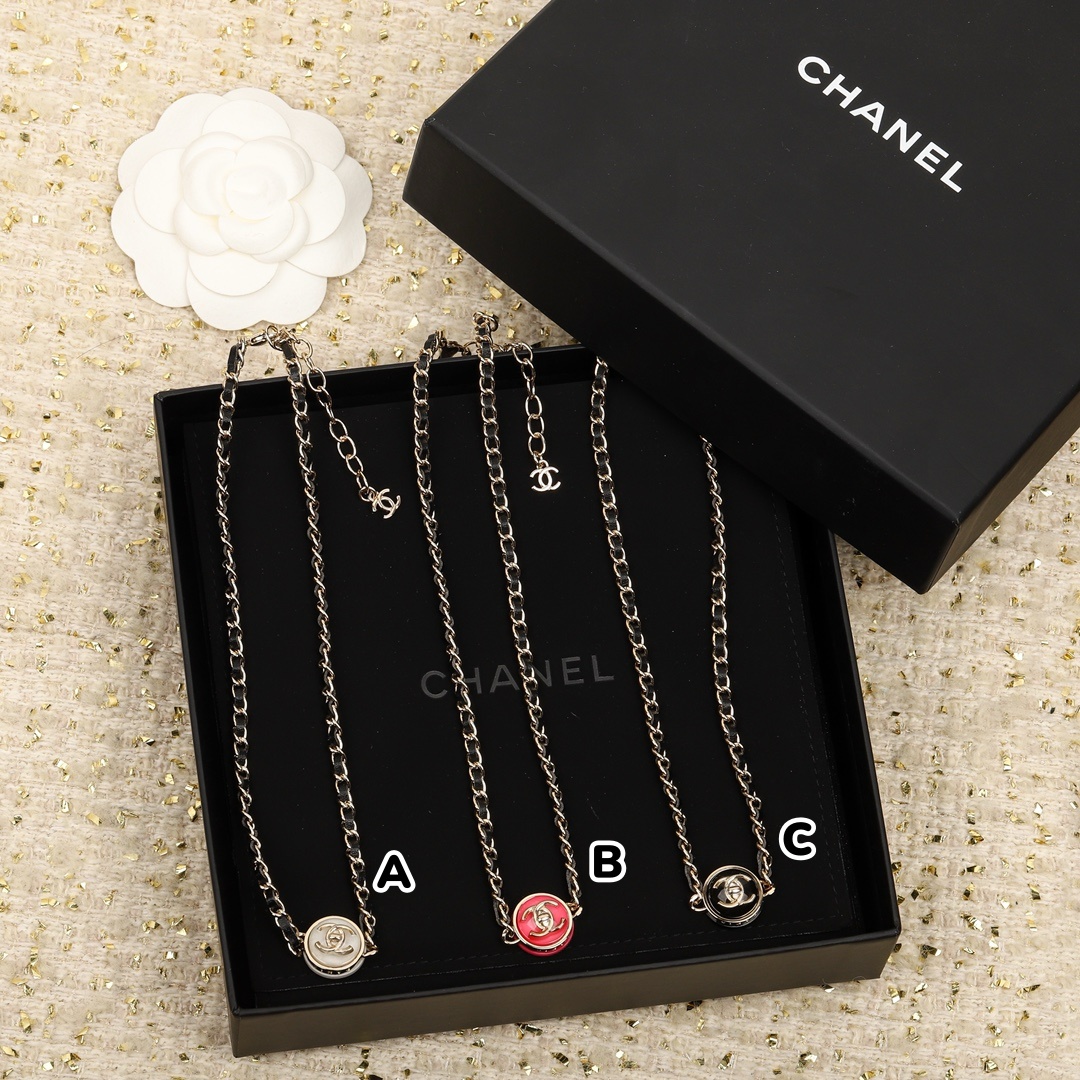 CHANEL 圓形紐扣穿皮項鍊