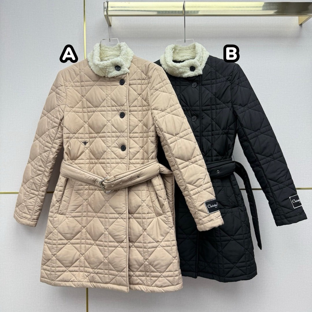 Dior 中長款藤格紋衍縫夾棉外套