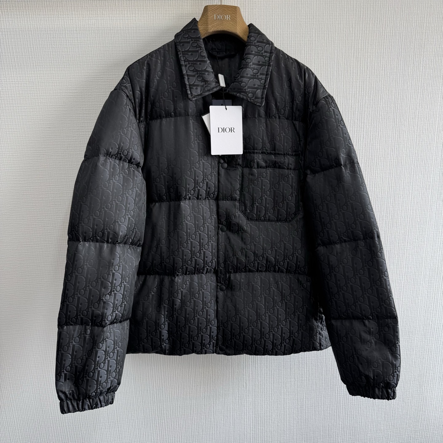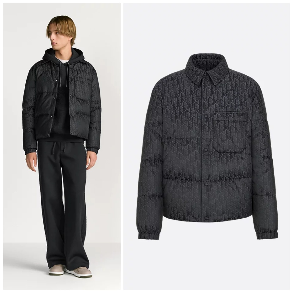 這款羽絨恤衫外套彰顯品牌的經典 Dior Oblique 主題圖案。以黑色棉混紡緹花製成,背面飾有 Dior 橡膠貼布,配以前胸貼袋和貼邊口袋,更顯特色。此輕盈的羽絨恤衫外套綴以全幅圖案,同色系幾何圖案細節可為造型增添風採