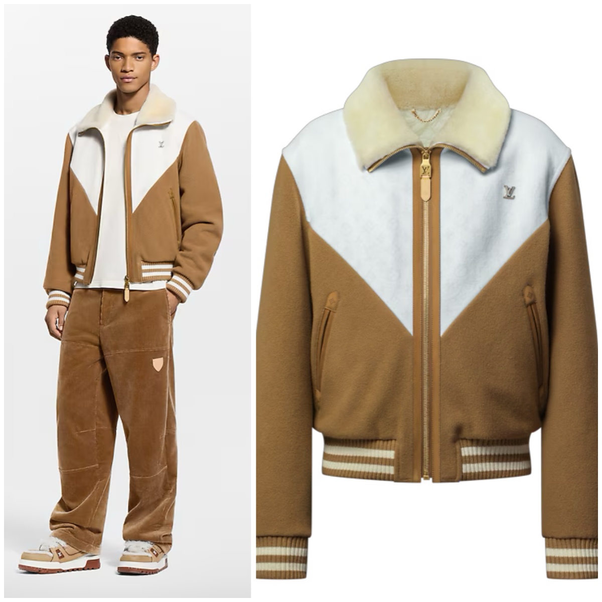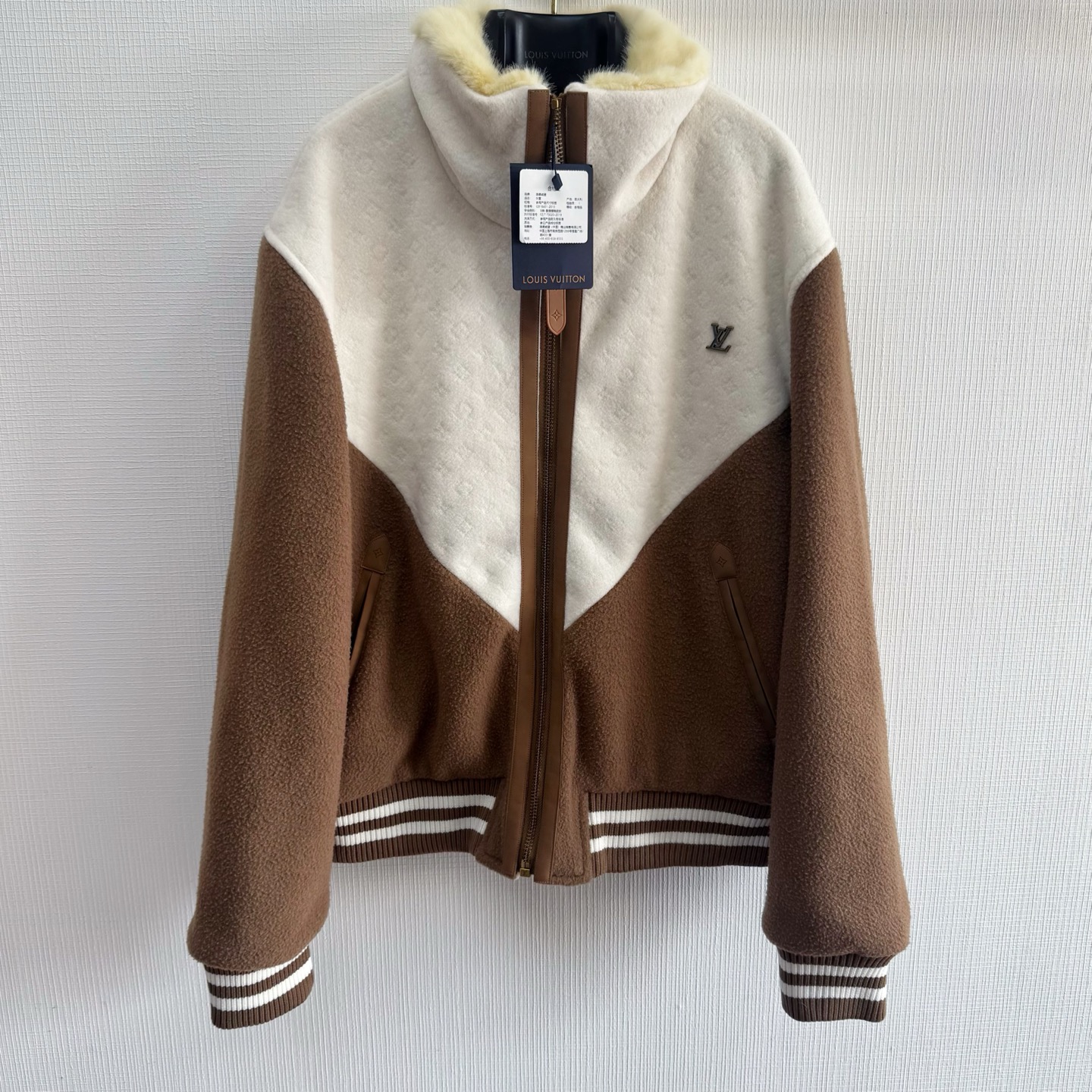 LV SKI Monogram 圖案羊毛毛領毛呢外套