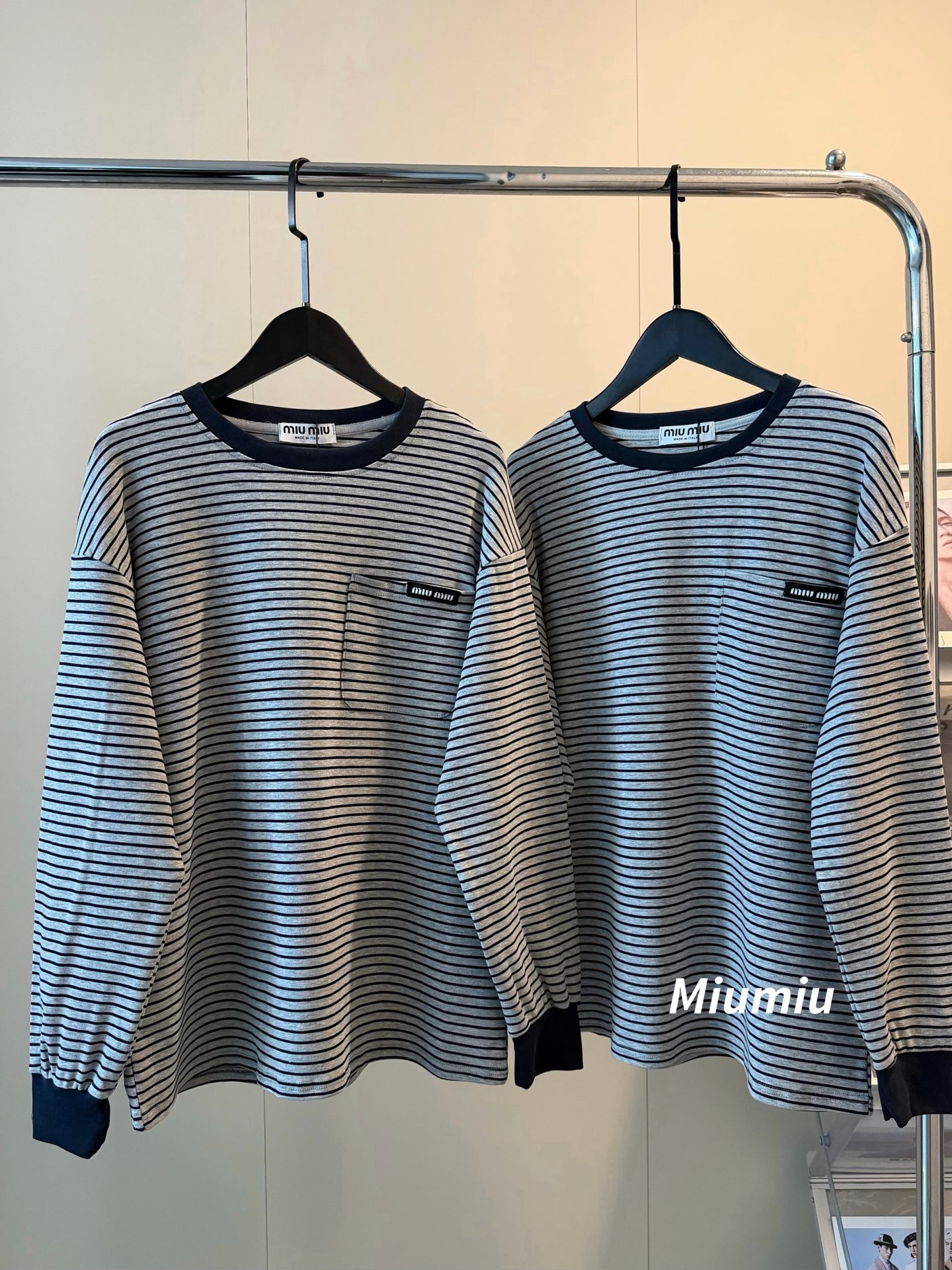 Miu Miu 新款口袋條紋長袖Tee