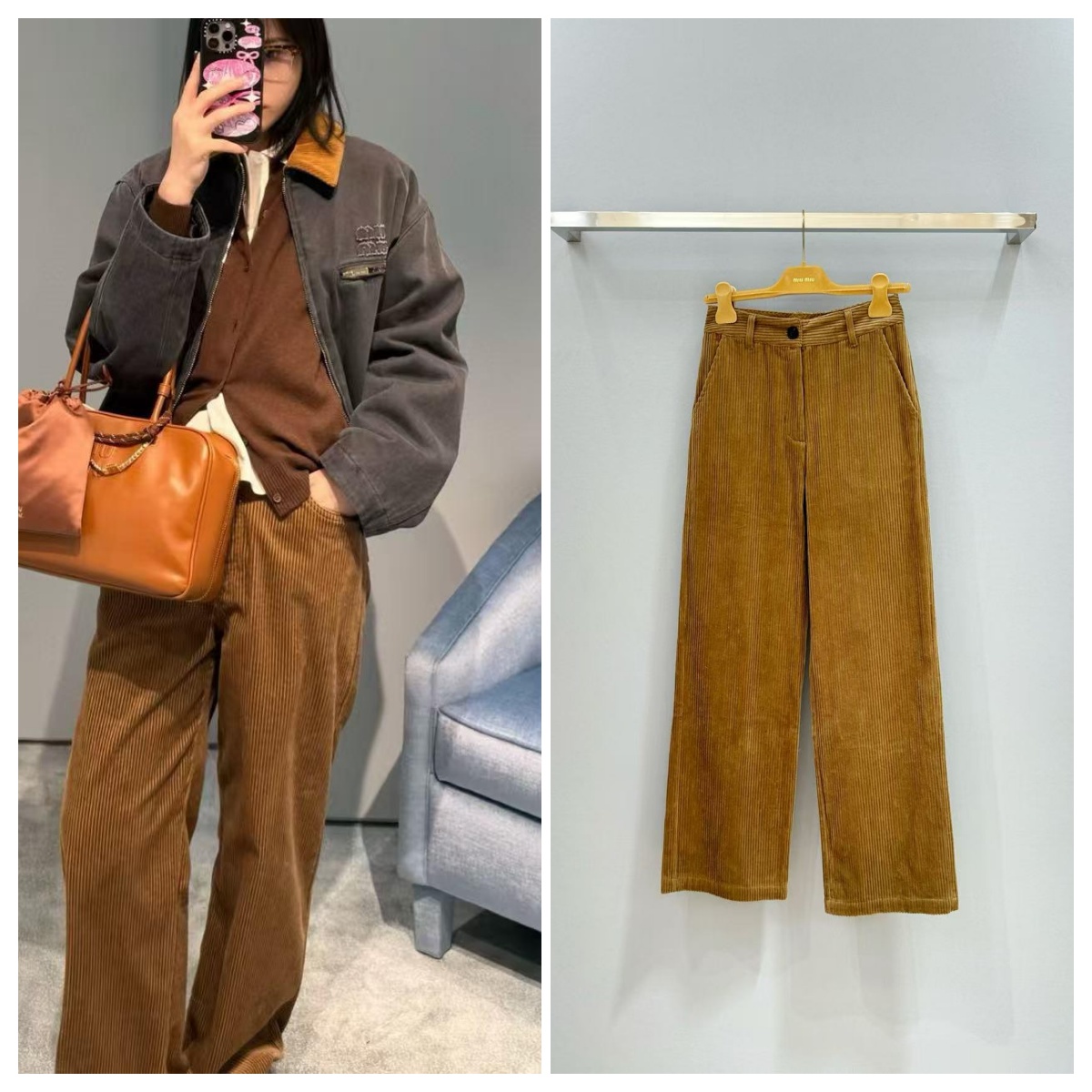 Miu Miu 貼布繡燈芯絨直筒長褲