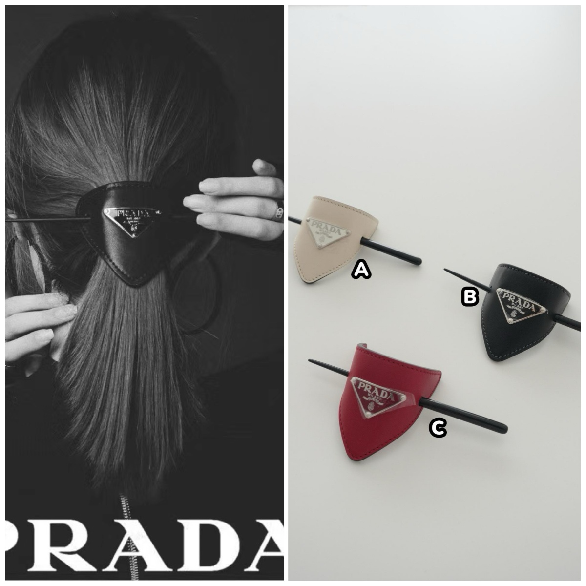 這款皮革髮簪飾有Prada徽標,細節之處展現精緻。