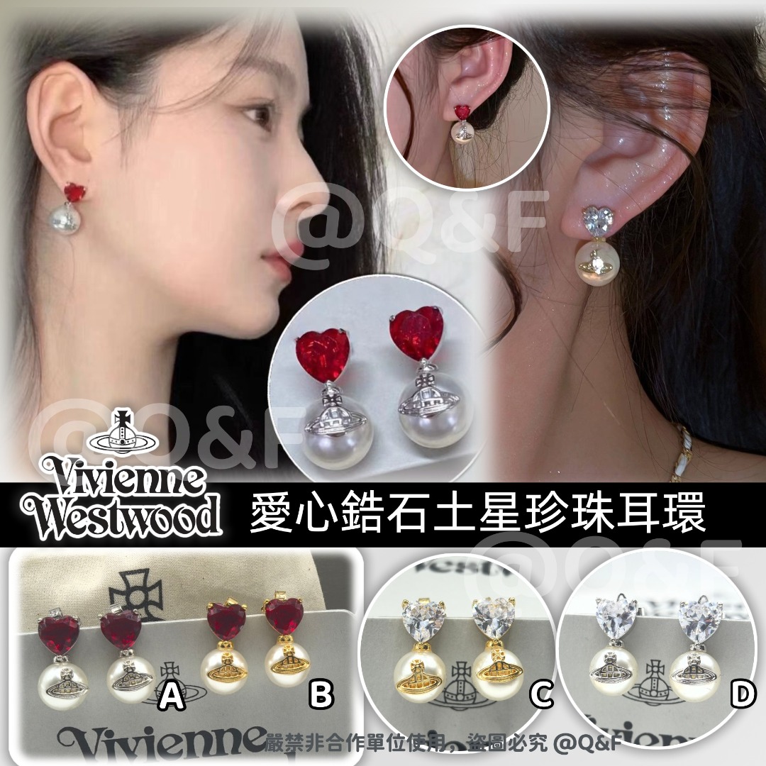 Vivienne Westwood 愛心鋯石土星珍珠耳環
