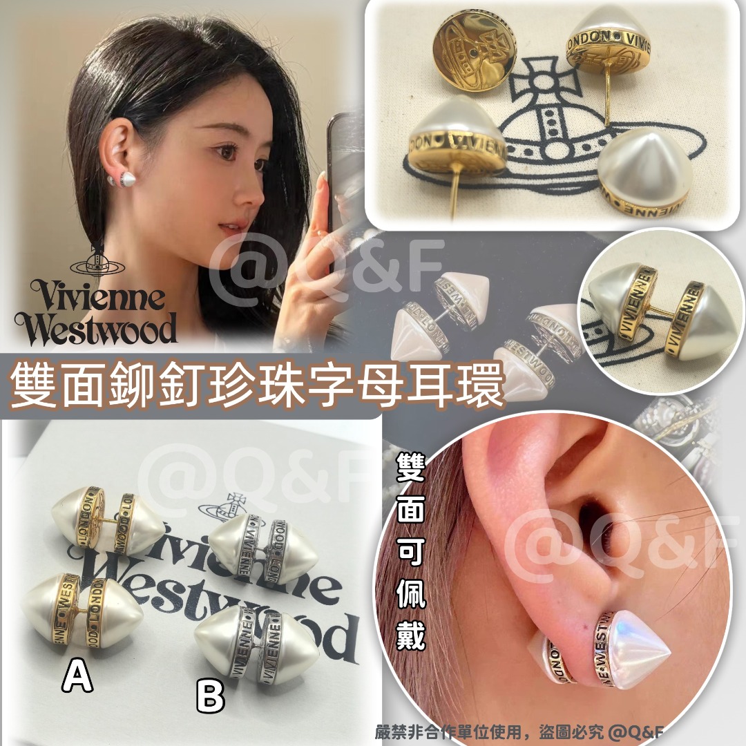 Vivienne Westwood 雙面鉚釘珍珠字母耳環